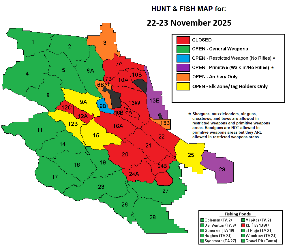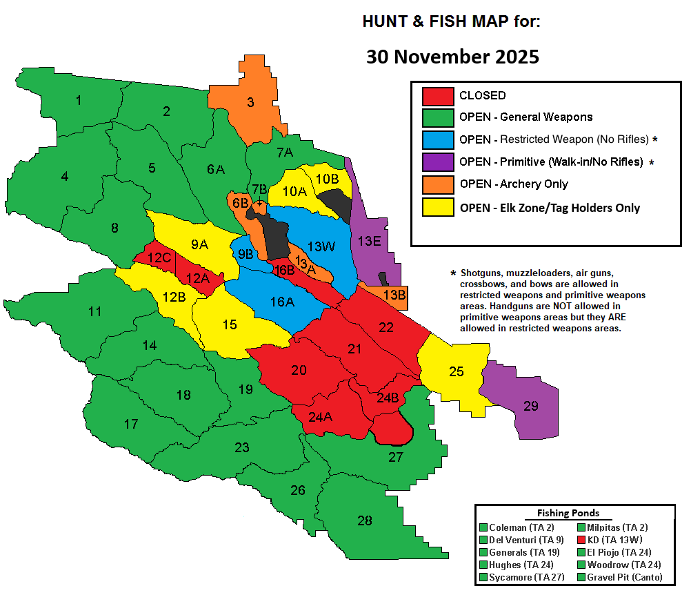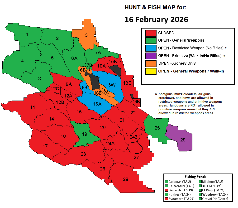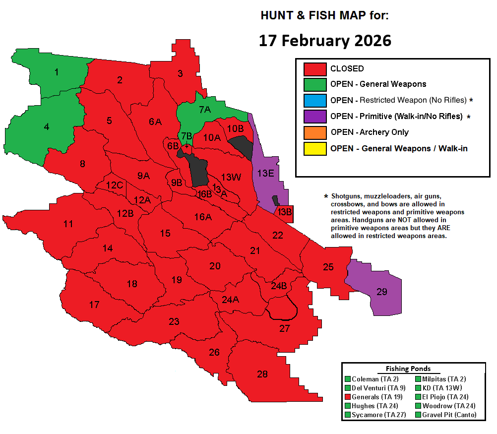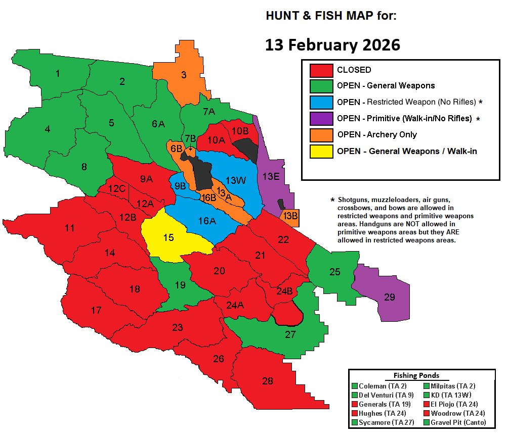 Forecast maps provide the best available information at the time of posting. All fishing reservoirs and hunt areas are subject to change without prior notice.